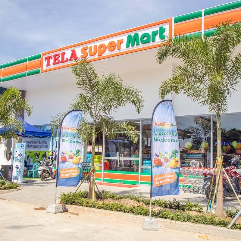 ផលិតផល Angkor Quality Foods មានលក់នៅផ្សារទំនើបល្បីៗក្នុងប្រទេសកម្ពុជា។